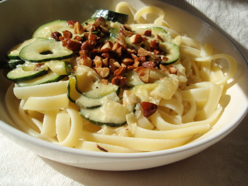 Další těstovinová dobrůtka. Recept jsme si oproti původnímu upravili tak, aby byl pro nás co do surovin dostupnější, zároveň ale neztratil kouzlo. Kombinace jemné cukety a smetanové omáčky jen lehce ochucené malým kouskem sýra a křupavých pražených mandlí nás teď zrovna nutí vařit tyto těstoviny minimálně každý druhý týden =) Použít můžete klidně i...